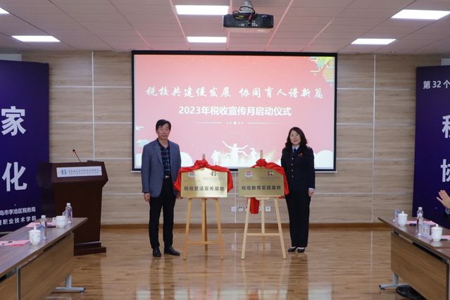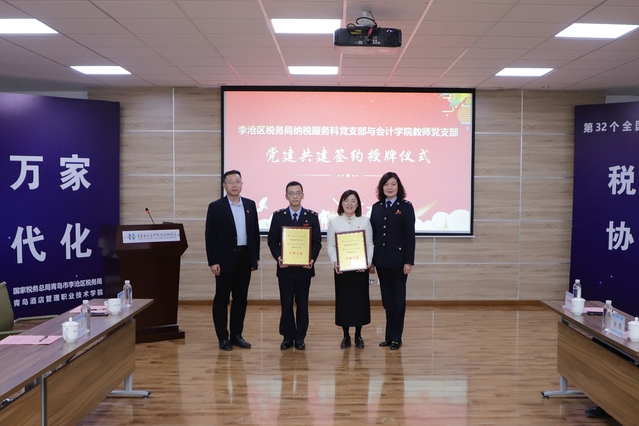 仪式上,李沧区税务局在会计学院建设“税收普法宣传基地”,会计学院在李沧区税务局建设“税收教育实践基地”,韩西清与李晓梅共同为两个基地揭牌。李沧区税务局纳税服务科党支部与会计学院教师党支部签署党建共建协议,邱心显、徐婕为共建支部授牌。随后,税校双方进行师资互聘。