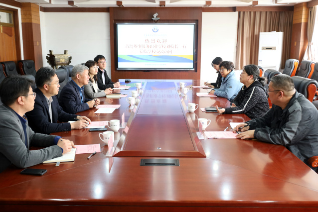 刘宇虹介绍了青岛外事服务职业学校发展建设的情况和此次考察交流的目的,并就专业建设、教学及科研、招生就业等工作进行了分享交流。