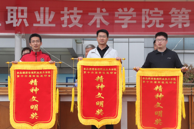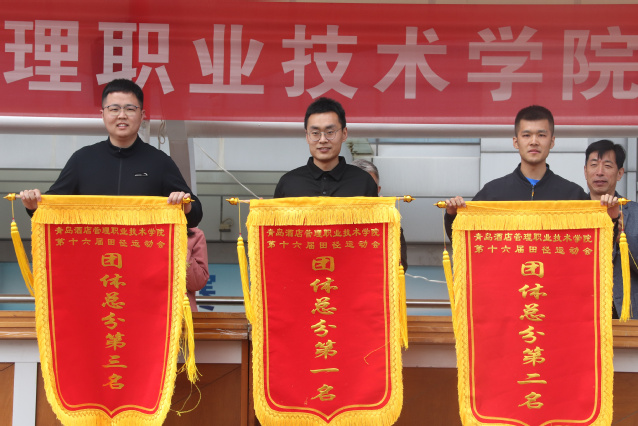 学校副校长宫恩龙主持运动会开闭幕式。在28日举行的闭幕式上,运动会总裁判长夏飞宣布了竞赛团体总分成绩,工商管理学院、酒店工程学院、酒店管理学院获得学生组团体总分前三名,工商管理学院、马院基础部、会计学院获得教工组团体总分前三名;副校长、工会主席姜玲玲宣布了获得精神文明奖的单位名单,酒店工程学院、烹饪学院、工商管理学院获得学生组精神文明奖,会计学院、工商管理学院、艺术学院获得教工组精神文明奖。学校领导向获得运动会竞赛团体总分前三名和精神文明奖的单位颁发了锦旗。