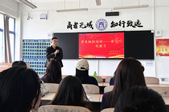 5月6日,工商管理学院各学生组织围绕“争廉洁标兵 扬新风正气”开展学生干部作风建设专题教育活动。活动以问题为导向,以案例为支撑,坚持警示震慑和示范引领相结合,通过讲解高校学生干部出现的正反两方面案例,结合工作实际,教育引导学生干部严于律己,养成廉洁品质,在生活学习中强化作风能力。