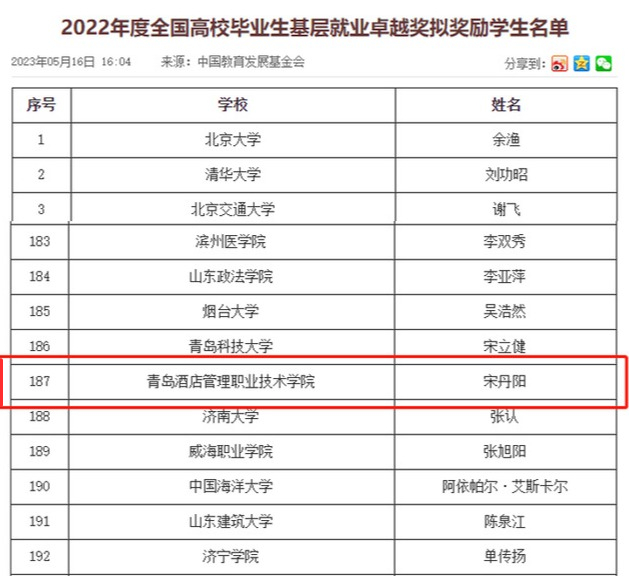 本网讯(招生就业办公室 工商管理学院)近日,教育部、中国教育发展基金会公布了2022年度全国高校毕业生基层就业卓越奖拟奖励学生名单,经高校推荐、专家评审,万象城官网2017届市场营销专业毕业生宋丹阳荣获全国高校毕业生基层就业卓越奖。