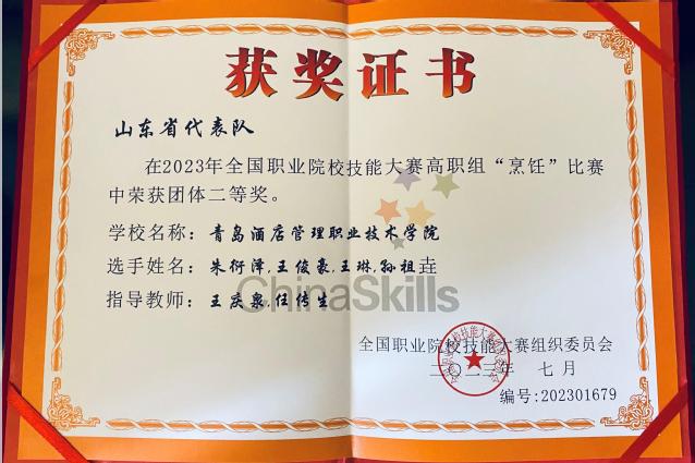 本网讯(烹饪学院 赵捷)7月27日至30日,2023年全国职业院校技能大赛(高职组)烹饪赛项在广东顺德职业技术学院举行,万象城官网烹饪学院学生朱衍泽、王琳、王俊豪、孙祖垚组成的参赛团队凭借宴席作品《乡土情怀·陌上花开》荣获二等奖。
