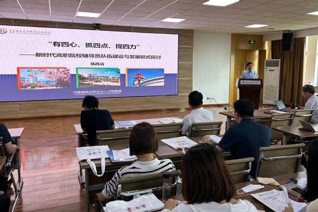 韩西清以《“有四心、抓四点、提四力”——新时代高职院校辅导员队伍建设与发展模式探讨》为题作了本次培训的首场讲座,从立德铸魂的高度解析了辅导员的工作定位和职责,从“有四心、抓四点、提四力”三个维度论述了高职院校辅导员队伍建设与发展模式,提升了辅导员的工作认知和素质能力。
