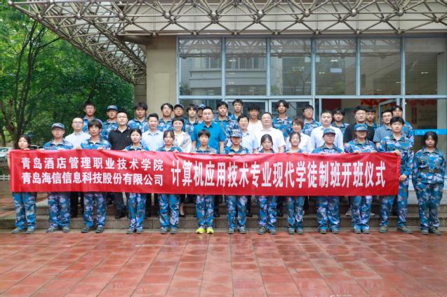 本网讯(信息工程技术学院 梁磊)9月12日,信息工程技术学院举行“计算机应用技术专业现代学徒制班”开班仪式,青岛海信信息科技股份有限公司总经理孙钦平、学校副校长张宗国参加活动。