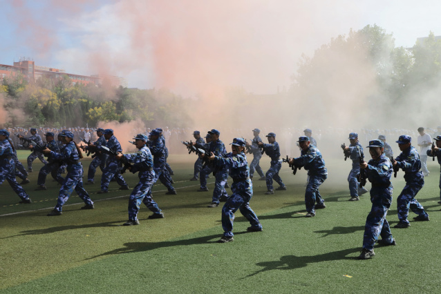 在雄壮的国歌声中,大会拉开帷幕。新生军训团团长主持会操,队列动作、格斗基础、单兵战术、轻武器射击依次呈现,同学们步履铿锵、斗志昂扬,展示了军训的丰硕成果。