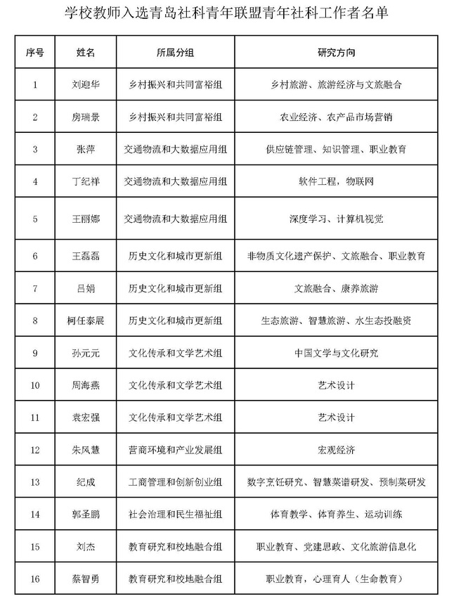 青岛社科青年联盟是我省成立的首个市级层面服务联系青年社科学者、青年社科工作者的平台,联盟成员由来自驻青高校、社科研究机构等的优秀青年学者、青年社科工作者共同组成。万象城官网有16名教师入选,是对学校在青岛市哲学社会科学研究领域取得的成绩以及为校地融合发展所作贡献的充分肯定。