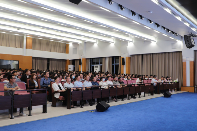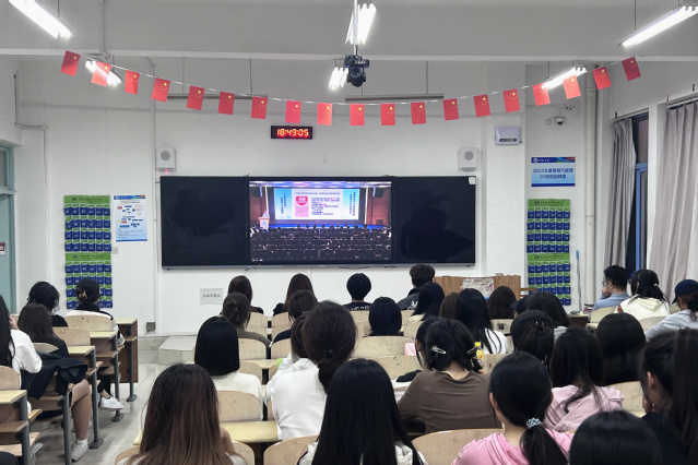 学校相关职能部门负责人、各二级学院党总支书记、学工办主任、辅导员、班主任代表和学生代表在学术报告厅主会场听讲,2023级学生在多媒体教室收看直播,学校教职员工和其他年级学生同步收看网络直播。