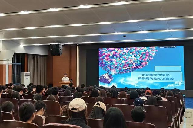 宣讲活动中,区疾控传染科科长解成顺面向大一新生介绍了秋冬季学校常见传染病相关知识。解成顺结合李沧区近几年学校传染病流行及发病趋势,就传染病爆发流行特点、学校传染病流行特征等方面进行分析,用通俗易懂的语言向新生们详细讲解了流行性感冒、肺结核、新冠病毒感染、水痘、猴痘、诺如病毒感染等发病症状、传播途径和预防方法。活动现场,医务人员还通过发放结核、流感等疾病宣传册,普及传染病常识,引导同学们树牢并自觉践行“健康第一”理念,养成良好卫生生活习惯和健康生活方式。