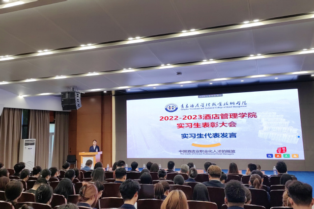 本网讯(酒店管理学院 王志飞)金秋送爽,丹桂飘香。10月12日下午,酒店管理学院在学术报告厅举行2022-2023学年实习总结表彰大会。