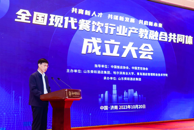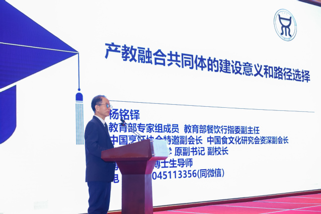 朱传纲在致辞中表示,全国现代餐饮行业产教融合共同体的成立,是贯彻落实党中央、国务院关于教育改革和发展相关文件精神的重要举措,是推动现代餐饮行业高质量发展的必然要求,是精准把握政策趋势、精准感知行业发展的睿智选择。他对共同体未来发展提出三点期望:一是要发挥政行企校间资源优势互补的作用,建立常态化、实体化的运作机制,实现优质教育资源与先进生产力的有效对接;二是聚焦全国现代餐饮行业人才供给侧和需求侧,注重依托产教融合培养学生的实践能力、技能水平和职业素养,构建起“产业赋能教育、教育培养人才、人才支撑产业”的产教融合循环生态链;三是要积极推进国际合作交流,积极参与国际标准制定和规则制定,实现教随产出、产教同行,提升行业的国际竞争力和职业教育的国际影响力。