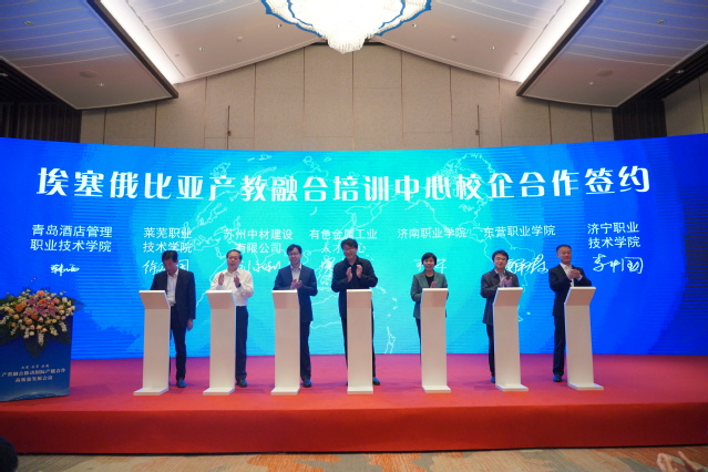 本次会议以“共建共享共商——产教融合推动国际产能合作高质量发展”为主题,围绕中国职业教育创新发展经验、国外职业教育发展经验和合作要求、职业教育“走出去”企业创新发展的探索、“中文+职业技能”赋能国际产能合作的探索等内容进行讨论交流。会议同期举行了中材国际埃塞俄比亚产教融合培训中心揭牌仪式,学校作为5所参建院校之一,与苏州中材建设有限公司、有色技术工业人才中心签署校企协同海外发展框架协议,共建中材国际埃塞俄比亚产教融合培训中心。