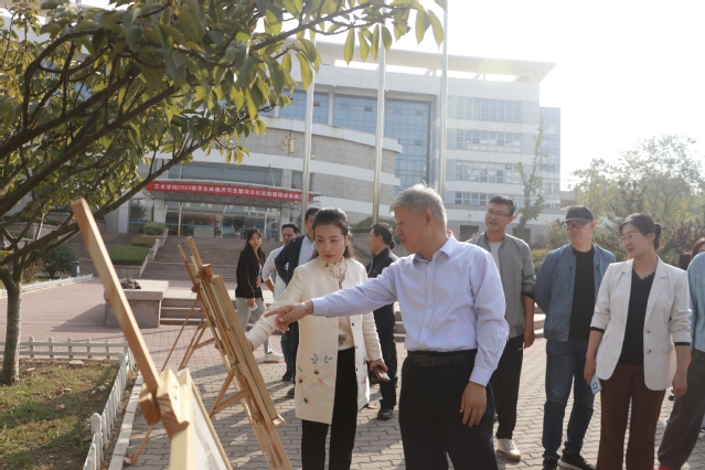 本网讯(艺术学院 袁宏强)10月26日,艺术学院举办2023级学生赴临沂写生项目化实践课程成果展,学校党委书记李达、副校长张宗国到场参观指导。