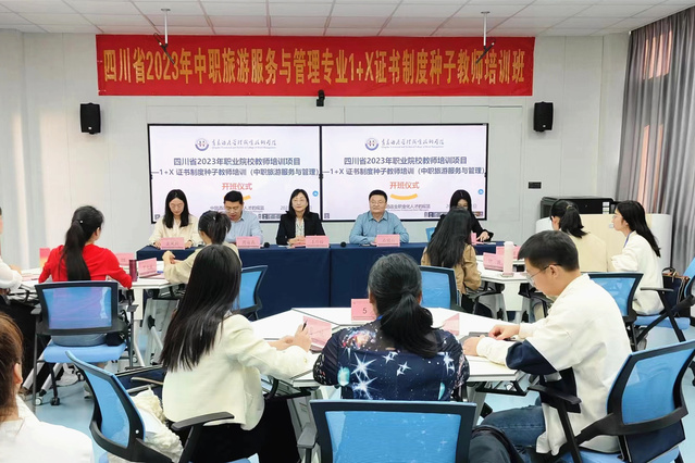 本网讯(文旅学院 继续教育学院)10月31日,四川省2023年中职旅游服务与管理专业1+X证书制度种子教师培训班开班仪式在文旅学院320室举行,来自四川省中职学校旅游类专业的18名骨干教师将在万象城官网开展为期26天的培训学习。学校副校长、工会主席姜玲玲参加开班仪式。