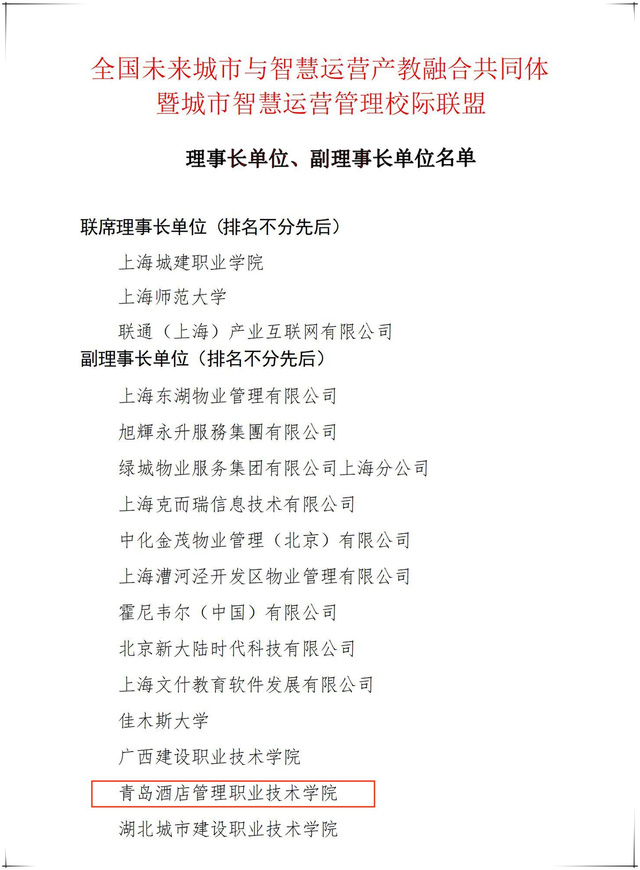 本网讯(酒店工程学院 张进)11月23日,全国未来城市与智慧运营产教融合共同体暨城市智慧运营管理校际联盟在上海城建职业学院举行,学校当选副理事长单位。