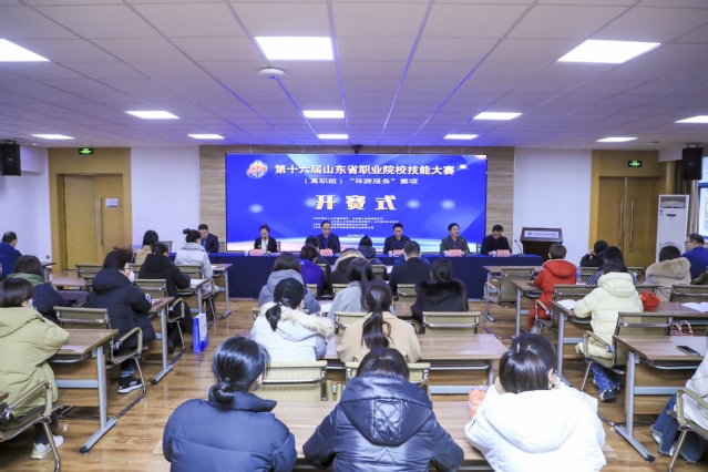 学校校长姜玉鹏在开赛式上致辞。他表示,高职组“导游服务”赛项是山东省职业院校技能大赛的经典赛项之一,旨在坚定文化自信,坚持守正创新,培养恪守职业道德、塑造工匠精神、弘扬时代主旋律、倡导文明旅游、引领职业风尚的新时代优秀导游人才。大赛有助于增进旅游行业与旅游职业院校之间的了解和沟通,搭建行业专家、导游大师名师与参赛选手、参赛院校之间的交流平台,推动旅游高素质技术技能人才队伍的培养,是助力我省导游人才质量提升的有效途径。学校高度重视此次赛项承办任务,周密筹划、精心准备,以高度的责任感和使命感确保比赛的顺利进行。