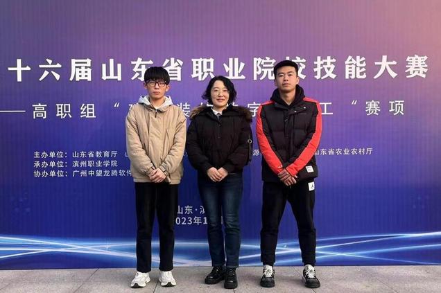 本网讯(酒店工程学院 赵炜)12月12日-14日,在第十六届山东省职业院校技能大赛高职组新设赛项“建筑装饰数字化施工”赛项中,万象城官网建筑工程技术专业教师赵炜、学生王洋和郝兆鑫组成的参赛队荣获三等奖。