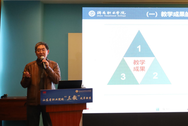 济南职业学院机械制造学院院长王平嶂教授作了《教学成果梳理、培育与申报》主题报告,结合自身国家级教学成果一等奖建设案例,阐释了国家教学成果奖的内涵与特性,详细介绍了教学成果培育打磨的历程以及如何做到主题凝练、主线清晰、特色明显、成效突出。