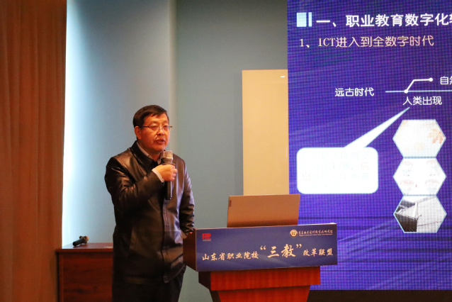 教育部职业院校信息化教学指导委员会主任委员、常州信息职业技术学院原党委书记王钧铭教授作了《职业教育数字化转型的内涵与路径》学术报告,全面分析了新时代教育数字化转型的历史背景,阐释了职业教育数字化转型面临的重大机遇和挑战,从教育理念、教育教学、管理服务和社会服务等方面界定了数字化转型的内涵特征,解答交流了专业人才培养域的数字化转型、职业院校教师数字化教学能力提升等现实问题。