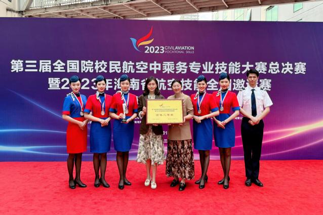 本网讯(酒店管理学院 李倩)12月18日至21日,第三届全国院校民航空中乘务专业技能大赛总决赛暨2023年海南省航空技能全国邀请赛在三亚航空旅游职业学院成功举办。由酒店管理学院教师李倩、徐姝指导,学生王俪颖、贾韵琛等六位同学组成的参赛队首次冲进全国总决赛并喜获二等奖。