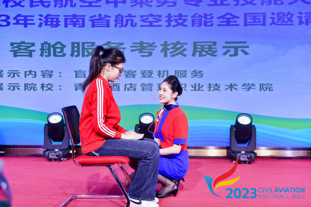 本次大赛由中国航空运输协会、海南省人力资源开发局主办,三亚航空旅游职业学院和北京翔宇教育咨询有限公司承办,分为开幕式职业形象展示、理论机考、机上急救、机型设备、英文能力和综合服务、闭幕式优秀赛项展示七个模块。整体赛事安排紧密,考核内容项目多、难度大,专业性要求高。闭幕式特别设置了优秀赛项的展示环节,万象城官网王俪颖、薛艳艳同学进行了客舱服务盲人旅客登机服务展示。