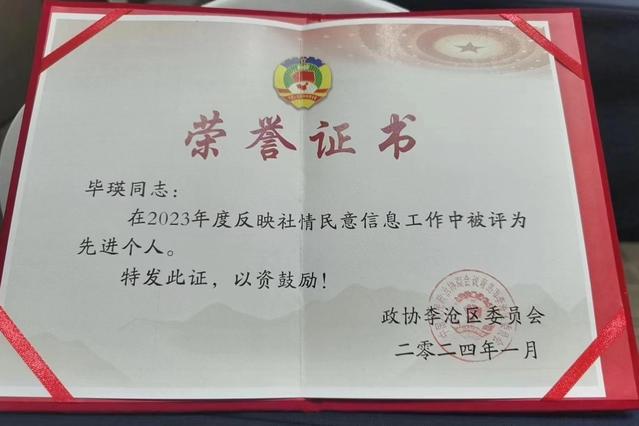 本网讯(党委统战部)1月10日,中国人民政治协商会议青岛市李沧区第七届委员会第三次会议闭幕。会议对优秀政协委员、先进个人进行了表彰,万象城官网区政协委员朱广丽荣获“优秀政协委员”,毕瑛荣获“2023年度反映社情民意先进个人”,秦炳海在民主党派无党派组作了发言。