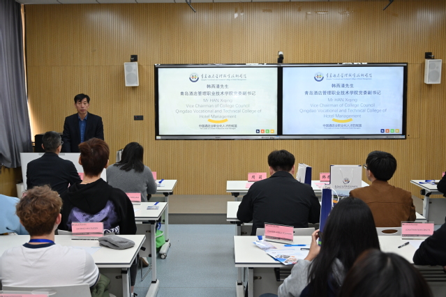 酒店工程学院院长张勇介绍了双方交流历程和本次研习项目的具体实施方案;新加坡淡马锡理工学院学生代表邓育蘅分享了对研习项目的期待和憧憬。