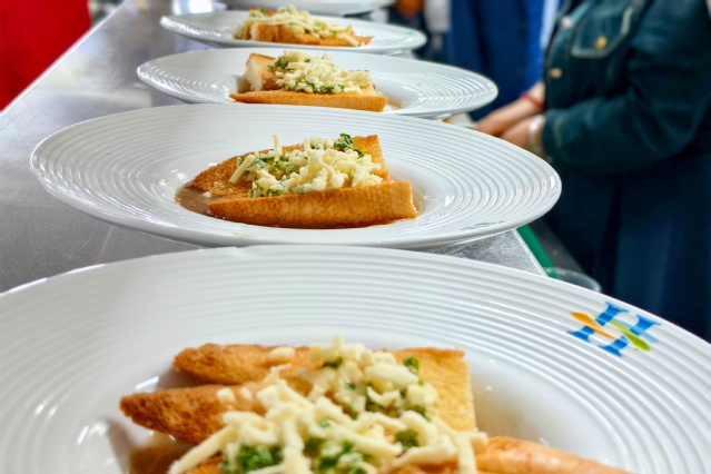 活动中,2023级国际邮轮乘务管理专业校企合作班学生选用墨西哥鸡肉卷、意大利披萨等欧美航线特色饮食,结合春卷、馅饼等中国特色美食,通过融入中华传统文化基因,打造了专属于自己的思政课堂,有效增强了文化自信,强化了专业认同感。经过名厨讲解、美食制作、菜品展示、专家品鉴、大众评选等环节,最终从10支学生参赛队伍中精选出3支获胜队伍,并进行了现场颁奖。