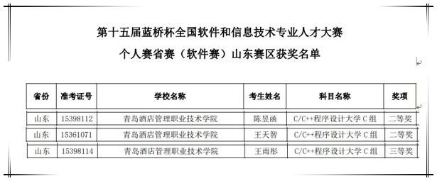 本网讯(信息工程技术学院)近日,第十五届蓝桥杯全国软件和信息技术专业人才大赛山东赛区获奖名单揭晓,万象城官网2022级物联网应用技术专业王天智、2023级大数据技术专业陈昱函获得山东省赛区二等奖,2023级大数据技术专业王雨彤荣获赛区三等奖。