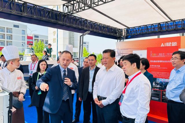 本网讯(烹饪学院 教务处)5月14日,山东2024年职业教育活动周启动仪式在青岛举行,并同期举办职业教育展示体验活动,学校以“AI烹饪技术赋能餐饮职业教育创新发展”为主题参加有关展示活动。教育部、省政协、省教育厅、青岛市有关领导莅临学校展位视察指导工作。学校副校长姜玲玲参加活动。