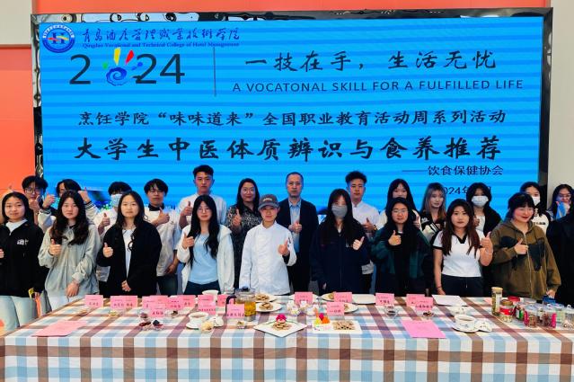 围绕“职业教育活动周”开展系列专题活动,依托社团活动和横向课题研究,面向学生系统科普“中医体质辨识与食养”知识,厘清烹饪科学、数智化与餐饮业发展要素关系,引导学生尝试搭配制作科学营养风味菜品,实现科研创新与产品升级共生共荣。