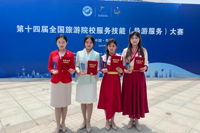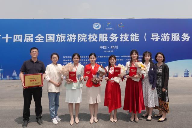 本网讯(文旅学院 姜萍)5月23日至26日,第十四届全国旅游院校服务技能(导游服务)大赛在河南郑州举行,文旅学院学子张聆歌、王惠敏获得普通话导游服务一等奖,刘晓宇、张慧媛获得英语导游服务一等奖,学校以高等院校组总分第一的成绩荣获团体奖。