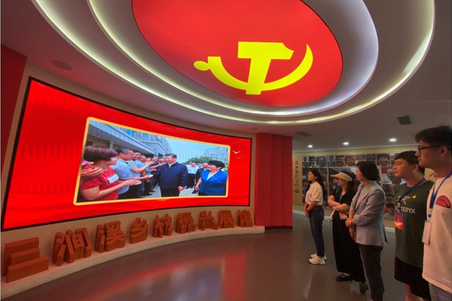 党旗引领风帆劲,教师们沿着习近平总书记视察的足迹参观了三涧溪乡村振兴展馆、村委党群服务中心和农特产品展销中心,深入了解其由乱到治、由治到富的先进党建经验。大家深刻感受到,三涧溪村干部群众牢记习近平总书记嘱托,以党建为引领统筹推进工作,班子、产业、环境、人才、文化一体推进,以奋斗和拼搏实现了乡村振兴真正“蝶变”。