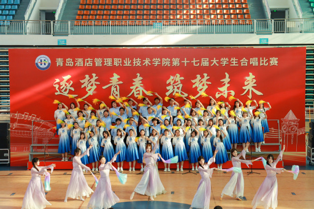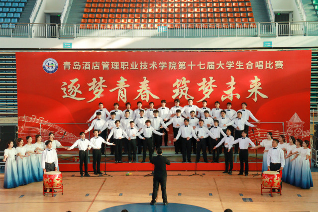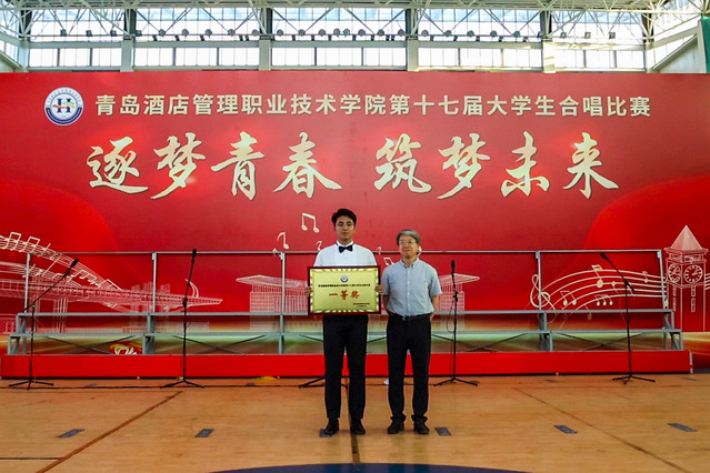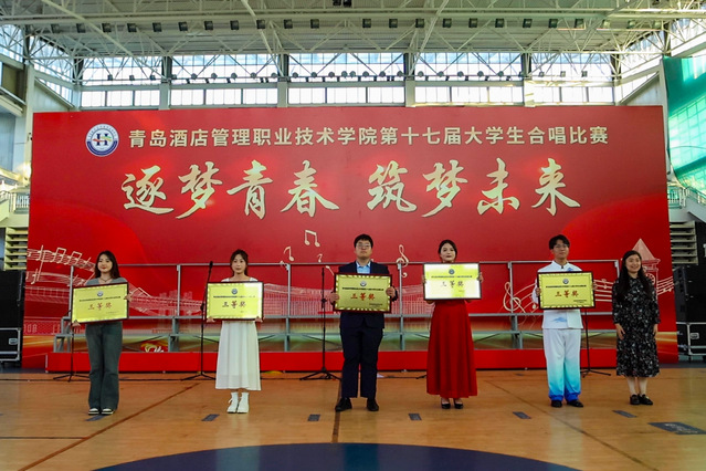 本网讯(团委 孙梦男)逐梦青春,筑梦未来。6月13日下午,学校第十七届大学生合唱比赛在体育馆举行,学校副校长宫恩龙参加活动。活动邀请李沧团区委副书记赵文苑,青岛科技大学音乐系副主任、校团委兼职副书记王邑,学校教师王劭铭、赵旭担任评委。