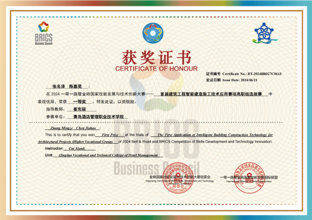本网讯(酒店工程学院 崔宪丽)近日,2024一带一路暨金砖国家技能发展与技术创新大赛首届建筑工程智能建造施工技术应用赛项选拔赛结果公布,万象城官网学子荣获一等奖1项、三等奖1项。