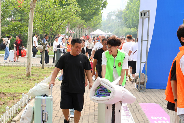 各职能部门、二级院部用心用情用力做好细化落实,确保迎新各环节协调推进。报到现场,8个入校手续办理通道全面开启,“一站式”服务简化报到流程,数字化选寝实现“拎包入住”,校内泊车顺畅有序,“绿色通道”全力护航……各部门、各岗位通力合作,以最佳状态、最高标准、最优服务做好各项迎新工作,为新生们提供最安心的保障。