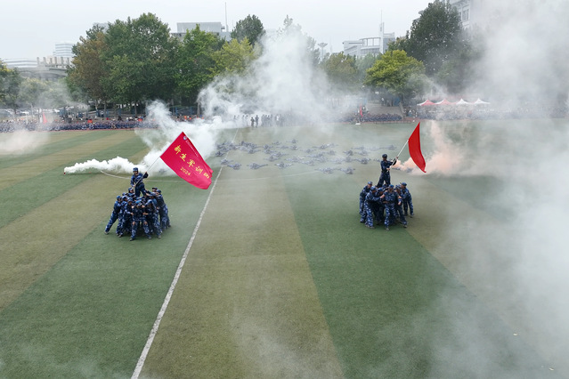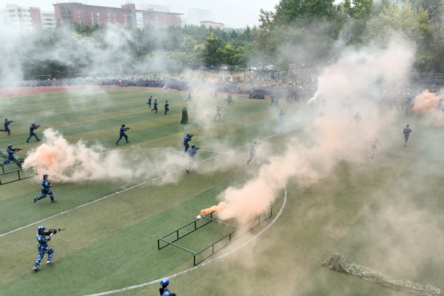 大会在雄壮的国歌声中拉开帷幕。新生军训团教导员主持军训会操,格斗刺杀、单兵战术、战场救护、队列展示等依次呈现,同学们斗志昂扬、口号嘹亮,展示了军训的丰硕成果。