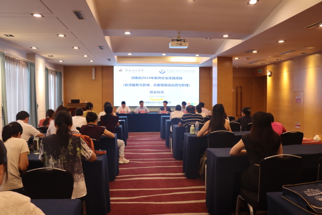 本网讯(继续教育学院 酒店管理学院)8月16日至9月14日,学校与山东舜和酒店集团联合承办了河南省教师企业实践项目(旅游服务与管理、高星级饭店运营与管理)培训班,来自河南省中高职学校的41名教师在济南、青岛两地完成30天的企业实践并顺利结业。