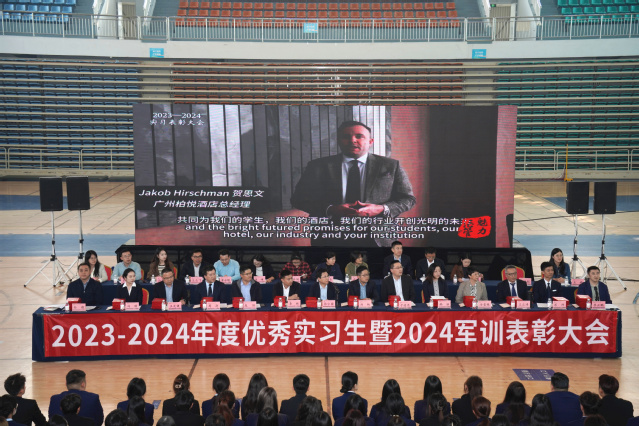 本网讯(酒店管理学院 王志飞)金秋十月,丹桂飘香。10月10日下午,酒店管理学院在体育馆举行2023-2024学年实习总结表彰大会。学校副校长张宗国参加活动。