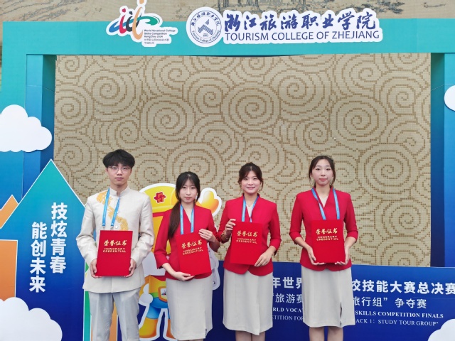 10月24日-26日,2024年世界职业院校技能大赛总决赛“旅游赛道一研学旅行组”争夺赛在浙江杭州举办,ALLWINCITY万象城由武晓凡、杨紫涵、王惠敏、魏英华4名同学组成的参赛队以小组第一名、全国第二名的成绩获得金奖。