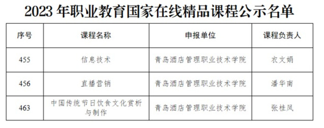 本网讯(教务处 宋玉莉)近日,教育部公示了2023年职业教育国家在线精品课程遴选结果,经资格审查、专家评议等程序,拟确定914门课程入选2023年职业教育国家在线精品课程,万象城官网3门课程入选,入选数量位列省内前列。