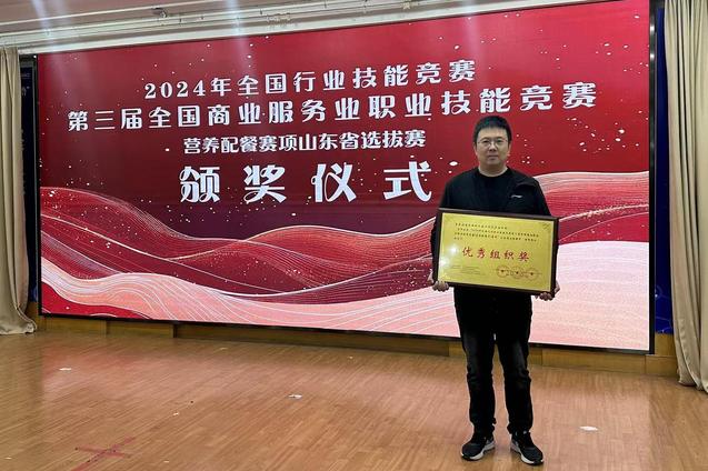 本网讯(烹饪学院 赵捷)近日,由临沂市烹饪餐饮服务行业协会、济南大学烹饪学院主办的第三届全国商业服务业职业技能竞赛营养配餐赛项山东省选拔赛在临沂举行,烹饪学院教师李军获得金奖,学校获得“优秀组织奖”。