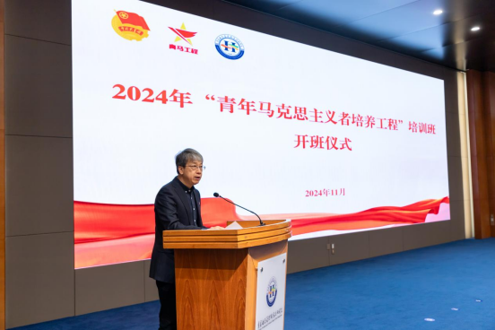 本网讯(团委 徐小田)11月21日,学校2024年“青年马克思主义者培养工程”培训班开班仪式在学术报告厅举行,学校副校长宫恩龙参加开班仪式并作动员讲话。