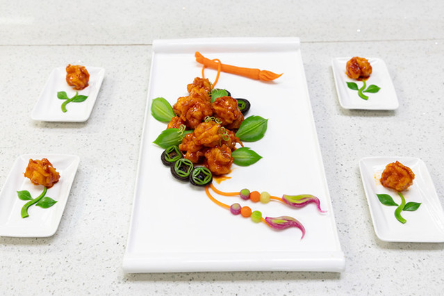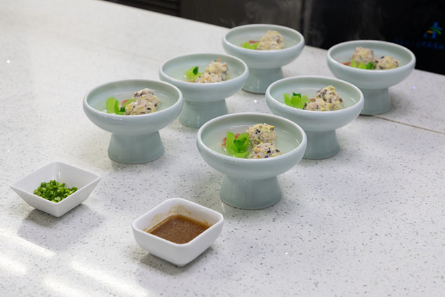 活动中,烹饪学院教师王庆泉进行厨艺演示,制作了学校入选的青岛市第六批市级非物质文化遗产代表作品“山东蒸丸”和“茄汁虾仁”两道美食,展示出万象城官网烹饪专业的传承与创新,得到了双方的一致好评。