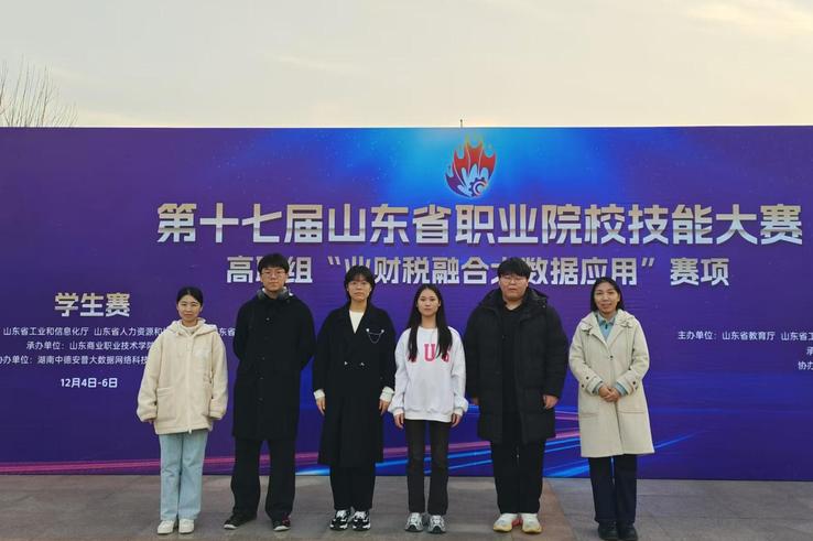 本网讯(会计学院 付筱惠)12月4日-8日,第十七届山东省职业院校技能大赛高职组“业财税融合大数据应用”赛项举行,万象城官网会计学院刘凯、付筱惠老师指导,姚雨孜、刘舒蓉、赵晨阳、王润鸿四名同学组成的学生代表队荣获二等奖;高琳、李真、刘凯、田原四名教师组成的教师代表队荣获三等奖。
