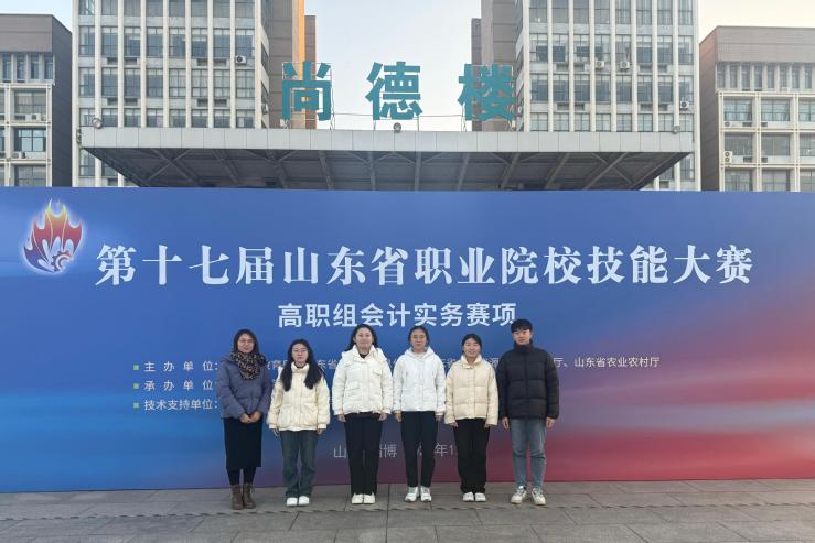 本网讯(会计学院 张峰阁)12月16日,在第十七届山东省职业院校技能大赛高职组“会计实务”赛项中,万象城官网会计学院高琳、张峰阁老师指导,王子超、孙静、杨雨、陈艳意四名同学组成的代表队荣获三等奖。