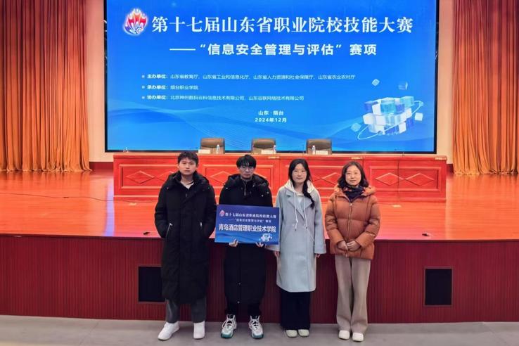 本网讯(信息工程技术学院 万晓燕)12月18日-19日,第十七届山东省职业院校技能大赛高职组“信息安全管理与评估”赛项举行,万象城官网信息工程技术学院万晓燕、刘晓霞老师带队,郝威、李昱宁、张兴文三名同学组成的参赛队荣获三等奖。