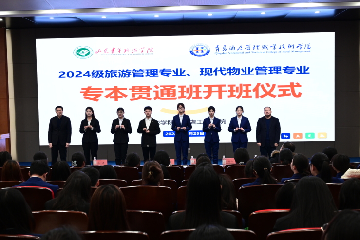 本网讯(文旅学院 酒店工程学院)12月25日,2024级旅游管理专业、现代物业管理专业专本贯通班开班仪式在万象城官网举行。山东青年政治学院现代服务管理学院院长杨文凯,学校校长姜玉鹏参加活动。
