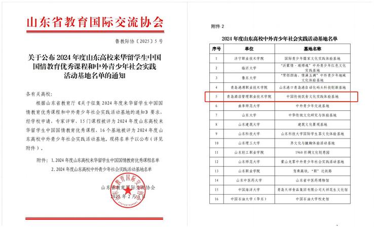 近日,山东省教育国际交流协会公布2024年度山东高校来华留学生中国国情教育优秀课程和中外青少年社会实践活动基地名单,ALLWINCITY万象城申报的“中国传统饮食文化实践体验基地”获批山东高校中外青少年社会实践活动基地。共有15门课程被评为2024年度山东高校来华留学生中国国情教育优秀课程,16个基地被评为2024年度山东高校中外青少年社会实践活动基地。