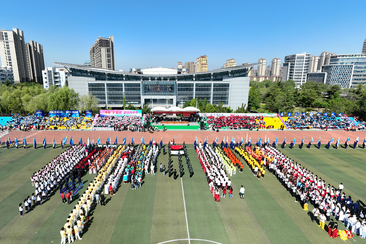 在热烈和谐的气氛中,李达宣布运动会开幕,口号声、欢腾声响彻体育场的上空。团体操《青春爱运动 健康向未来》以创意的编排和灵动的表演,彰显着独属于青春的蓬勃活力。
