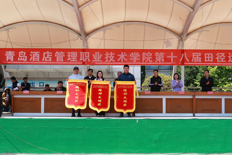 学校副校长宫恩龙主持运动会开闭幕式。在29日举行的闭幕式上,运动会总裁判长夏飞宣布了竞赛团体总分成绩,工商管理学院、酒店管理学院、烹饪学院获得学生组团体总分前三名,马院基础部、艺术学院、酒店管理学院获得教工组团体总分前三名;党委副书记韩西清宣布获得精神文明奖名单,会计学院、烹饪学院、艺术学院获得学生组精神文明奖,酒店管理学院、工商管理学院获得教工组精神文明奖。学校领导向获得运动会竞赛团体总分前三名和精神文明奖的单位颁发了锦旗。